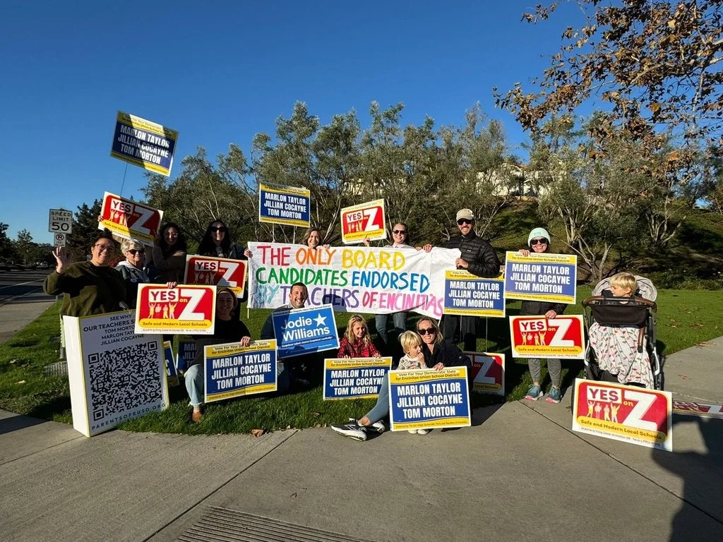 PoE is a group of community members in Encinitas and South Carlsbad – it includes district parents, grandparents, aunts and uncles, friends, allies, and more. We came together in the lead up to the 2024 election because we were alarmed at some of the discriminatory rhetoric we had witnessed at school board meetings and promoted by a candidate running for school board. Since then, we’ve developed into a grassroots organization with the mission of uniting neighbors to protect high-quality public education for every kid in EUSD.